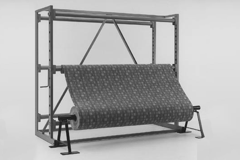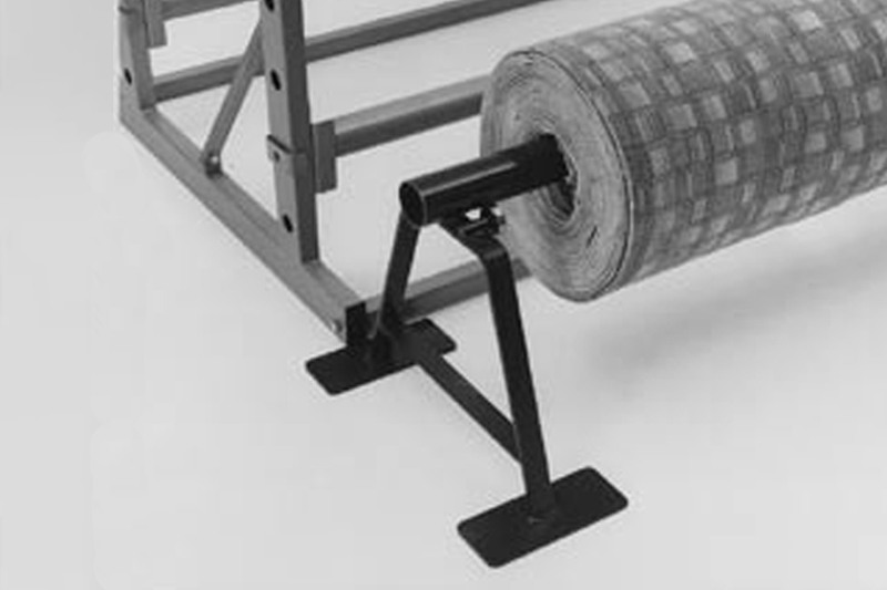 Steek de overrolbuis door de rol tapijt en leg deze met de uiteinden op de gelagerde bokken. Bevestig het tapijt tussen de klemmen aan de ophangbuis en u rolt het tapijt met de handslinger zonder moeite over in de stelling.
