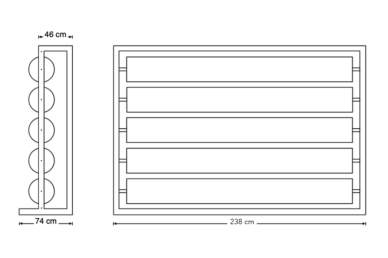 Tapijtstelling enkelzijdig vrijstaand 2 meter incl. 4 ophangsets