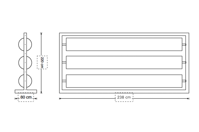 - Hoogte: incl. zwenkwielen 2,40 meter
